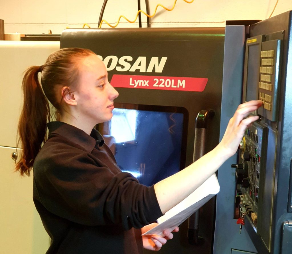 It is a real pleasure, as it is with all our apprentices, to see Rebecca now progressing in her second year. She is learning very quickly and the team at Elder are enjoying passing their knowledge onto her with some laughs along the way. She is already proficient in Manual Turning, Milling and Bench work and is now into programming our Doosan lathes including C and Y axis operations. All this, while also keeping on top of the college work than goes hand in hand with the practical aspects.